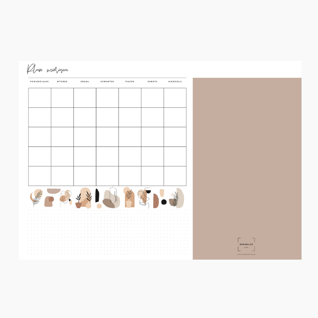 Biuwar z rzutem na cały miesiąc, pozwoli Ci mieć wszystko pod kontrolą. Z powodzeniem zanotujesz na nim sprawy biznesowe, obowiązki rodzinne, zaplanujesz urlop, czy konkretny projekt. Dużo miejsca na dodatkowe notatki, uwagi pozwoli Ci mieć wgląd w cały miesiąc.