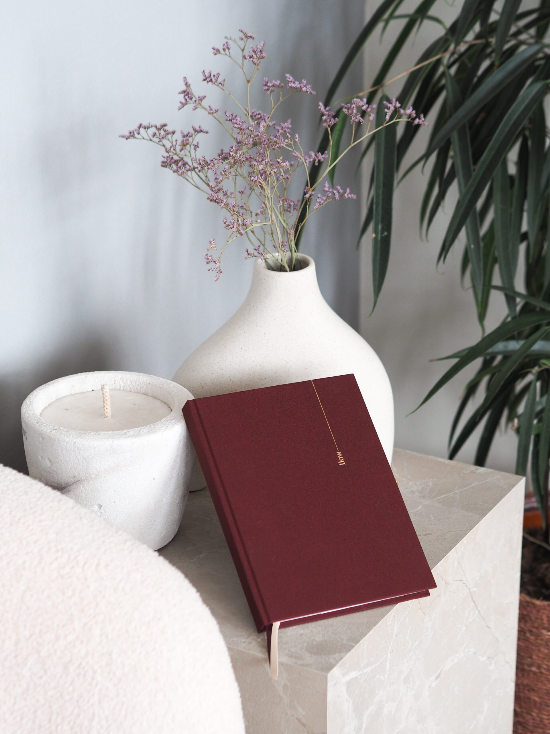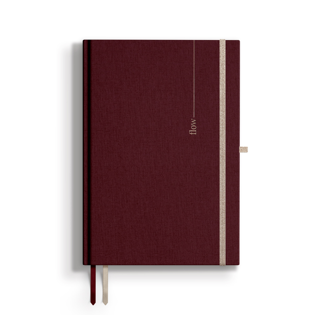 Planner FLOW w szlachetnym burgundzie z hasłem „Flow” to zaproszenie do działania z płynnością. Dla tych, którzy chcą planować bez presji, ale z lekkością, rytmem i świadomością.